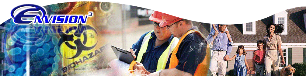 Envision 3 Group, Inc. is a full service environmental firm providing a broad range of environmental consulting including but not limited to asbestos inspections, asbestos testing, mold inspections, mold testing, asbestos management, site assessments, indoor air quality assessments, mold testing, remediation design and implementation, lead based paint inspections and field services to a wide variety of clients. Our personnel are committed to providing prompt and professional environmental services. We pride ourselves on the increasing number of private, corporate, and government clients who exclusively use Envision's services to solve their complex environmental and regulatory concerns.